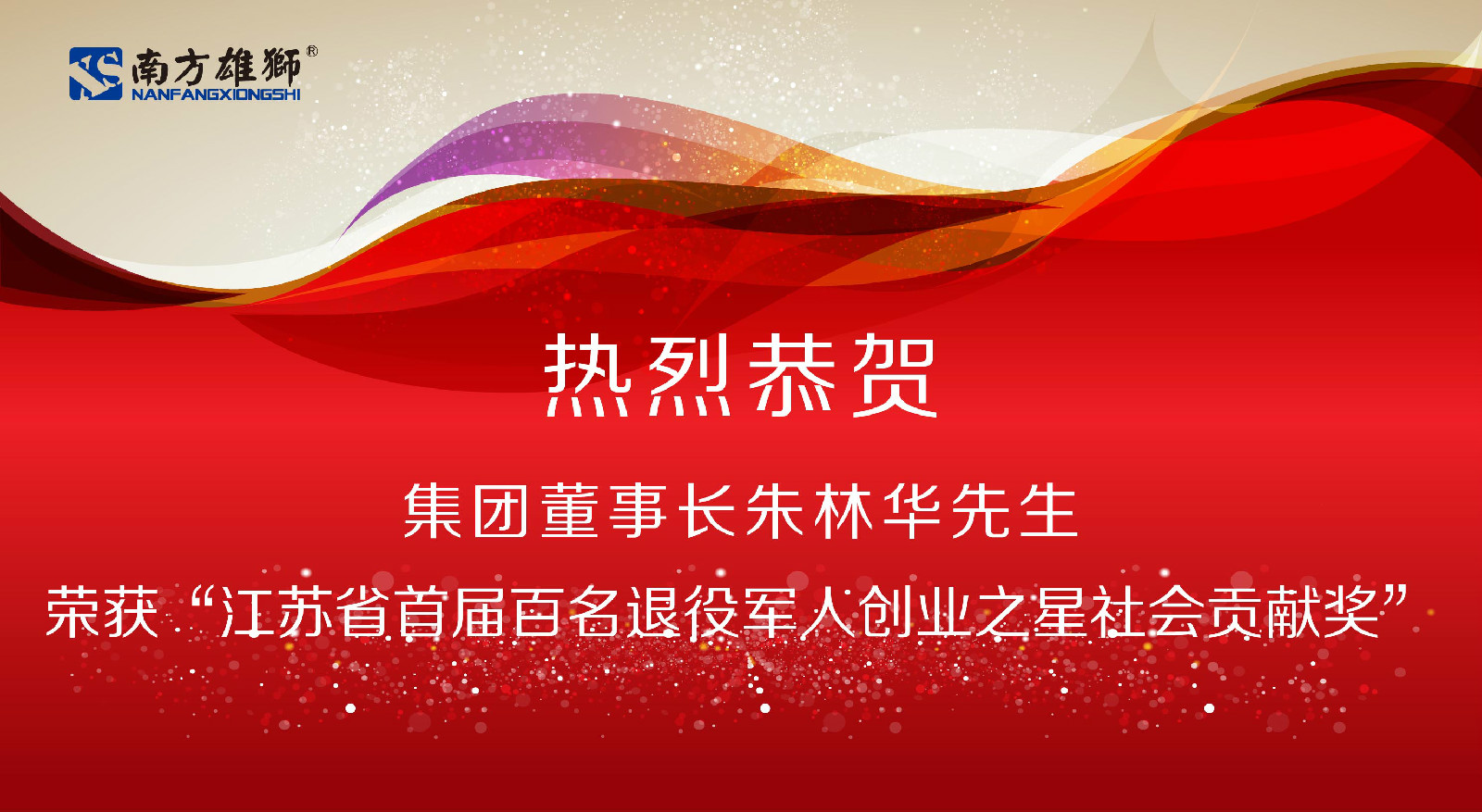 恭贺集团董事长朱林华先生荣获“江苏省首届百名退役军人创业之星社会贡献奖”根据国家国防教育办公室2017年试点工作要求,省委宣传部、省经信委、省民政厅、省人社厅、省工商联、省军区政治工作局、省国防教育办公室等单位联合在全省开展了“江苏省首届百名退役军人创业之星”推选活动。集团董事长朱林华先生在此次推选活动中荣获社会贡献奖